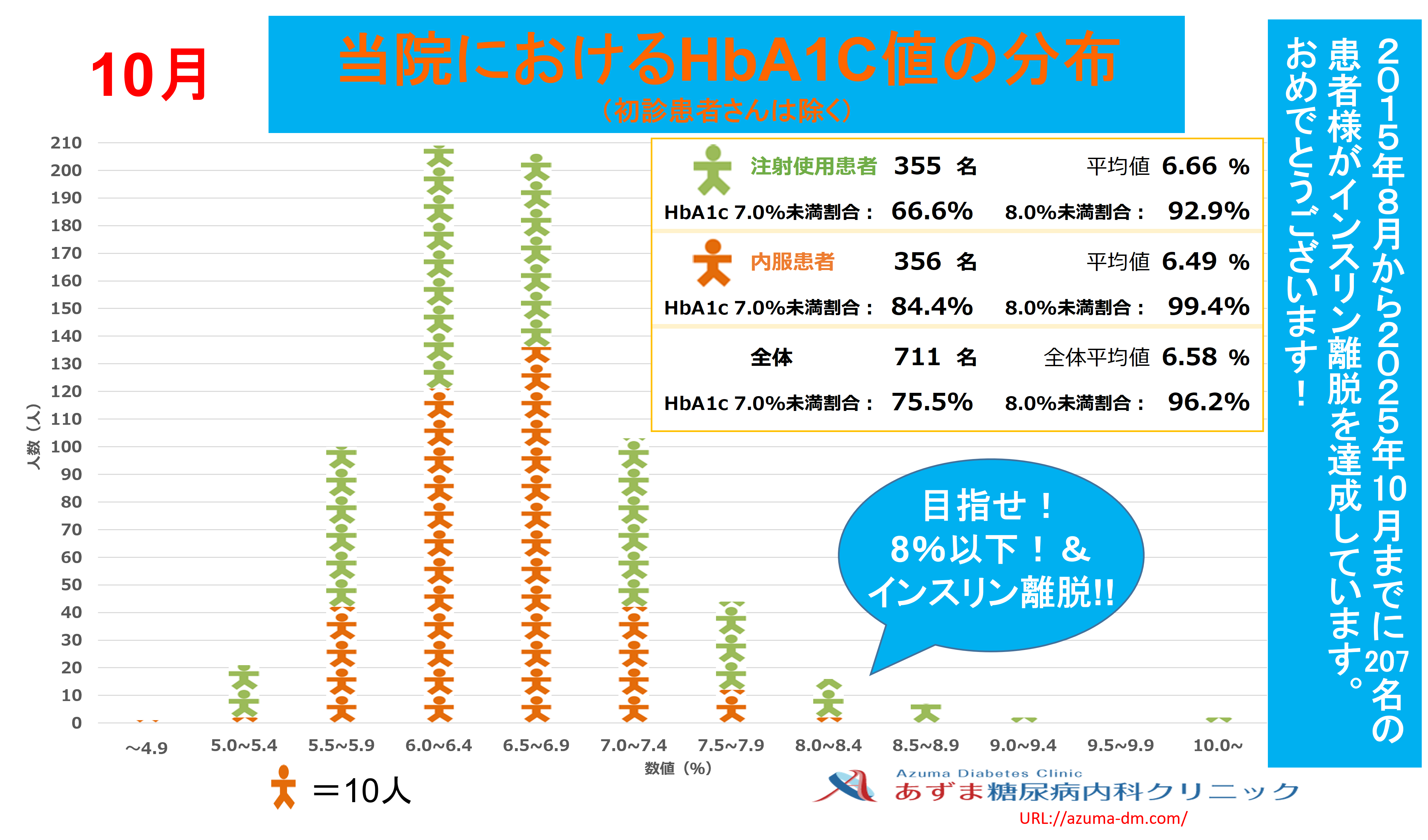 2015年8月から2025年10月までに207名の患者様がインスリン離脱を達成しています。